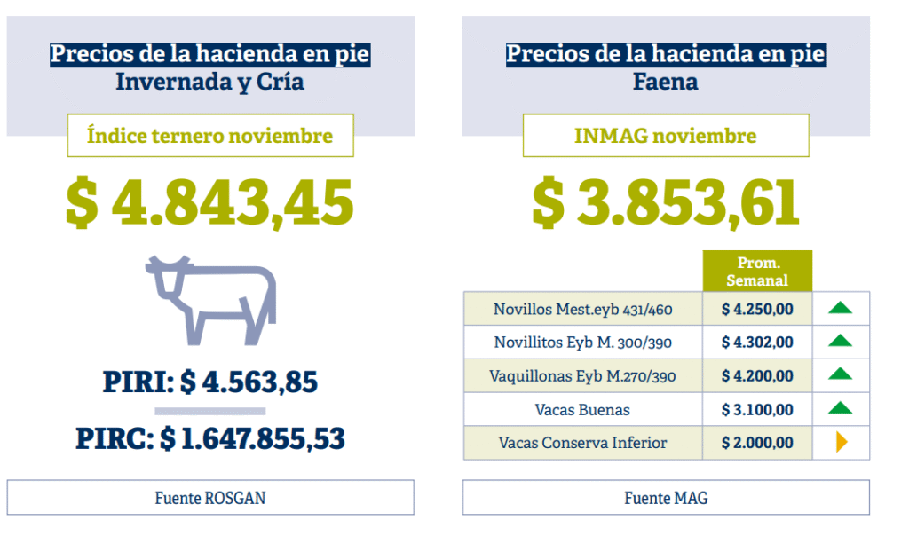 El precio del novillo en Argentina atraviesa uno de los niveles más altos registrados en términos nominales. Durante noviembre y diciembre de 2025, el valor de la hacienda para faena se aceleró por encima de la inflación y rompió récords en todos los indicadores del mercado. El Índice del Novillo del Mercado Agroganadero (INMAG) promedió $3.853,6/kg, con un aumento intermensual del 18,7 % y una variación anual del 92 %, según datos publicados por Rosgan.