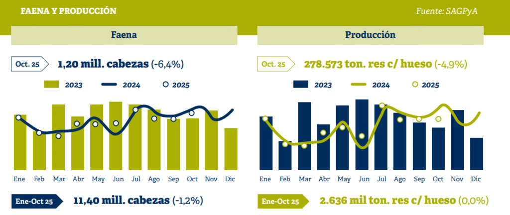 Esta merma aparece justo cuando el mercado local más demanda carne. Diciembre siempre incrementa el consumo por las fiestas, vacaciones y aumentos salariales estacionales. En un contexto de oferta reducida, la presión sobre los precios se amplifica y se traslada casi de inmediato a la hacienda gorda.